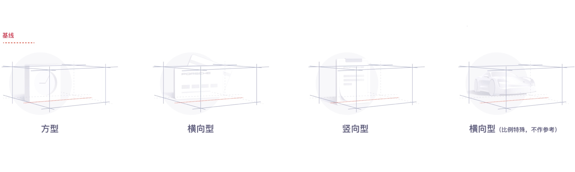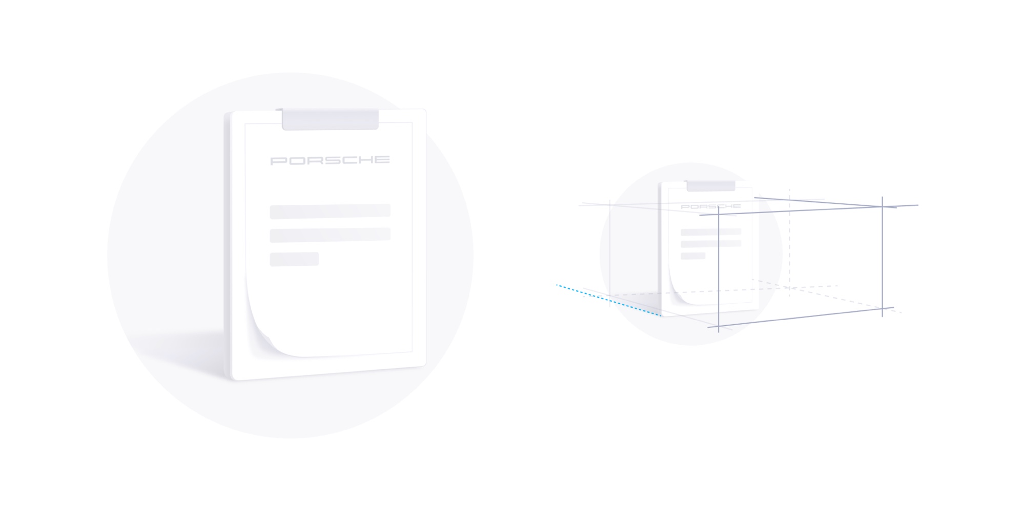 根据以上的所有定义出「PURE SPACE」的设计语言,通过轻量材质和光影的 3D 表现手法,结合其他平面视觉表达,传达出保时捷需要传达出的现代、简洁、科技、尊享和高端等等品牌关键词。