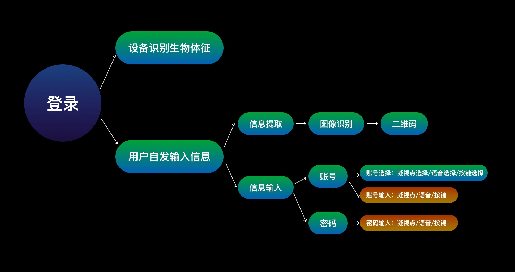 登录行为的本质是身份验证,有两种方法可以完成,一种是生物体征识别验证,无需用户进行任何操作,依赖于硬件设施,如虹膜验证,声纹验证,面容识别等;另外一种是通过用户向系统输入自身信息,系统进行信息的比对和验证,比如图像识别扫码登录、扫码验证登录、账号密码验证登录等。